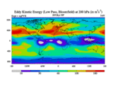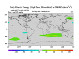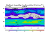 Low Pass Eddy Kinetic Energy at 200 hPa