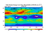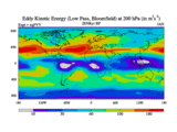 Low Pass Eddy Kinetic Energy at 200 hPa