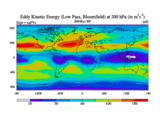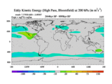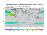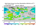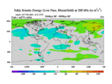 Low Pass Eddy Kinetic Energy at 200 hPa