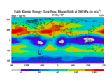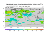 Low Pass Eddy Kinetic Energy at 200 hPa
