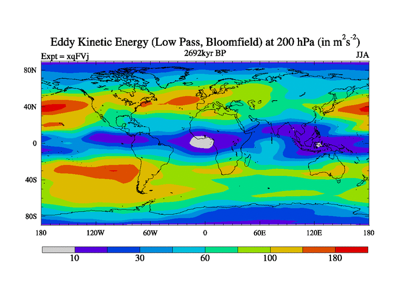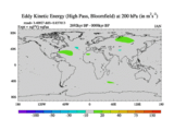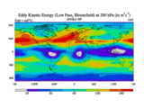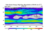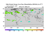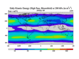 Low Pass Eddy Kinetic Energy at 200 hPa