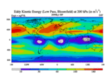Low Pass Eddy Kinetic Energy at 200 hPa