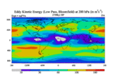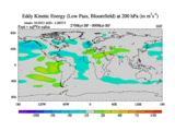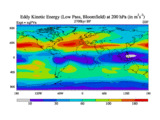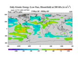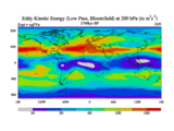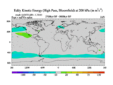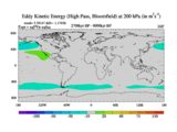 Low Pass Eddy Kinetic Energy at 200 hPa