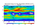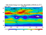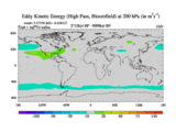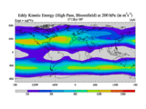 Low Pass Eddy Kinetic Energy at 200 hPa