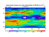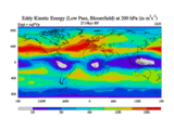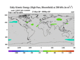 Low Pass Eddy Kinetic Energy at 200 hPa