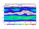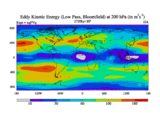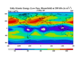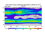 Low Pass Eddy Kinetic Energy at 200 hPa