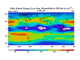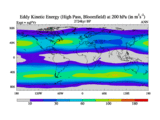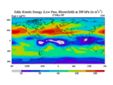 Low Pass Eddy Kinetic Energy at 200 hPa