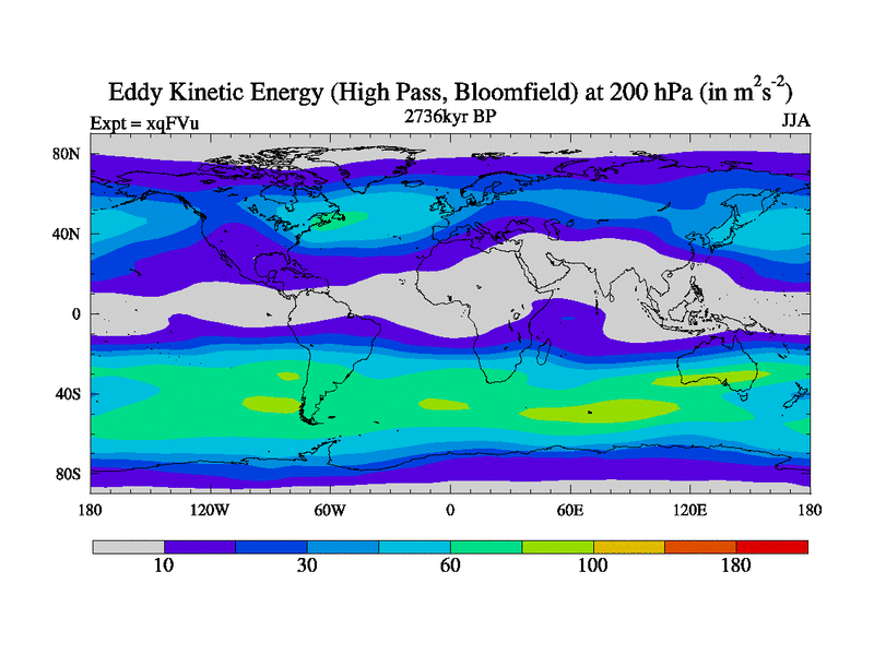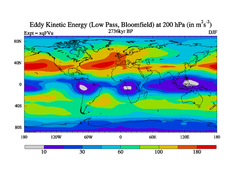 Low Pass Eddy Kinetic Energy at 200 hPa
