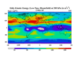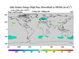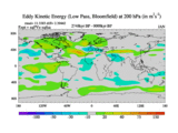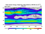 Low Pass Eddy Kinetic Energy at 200 hPa