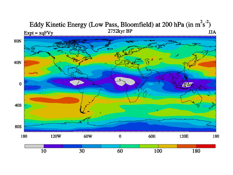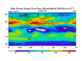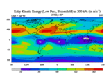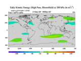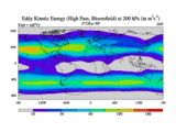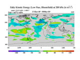 Low Pass Eddy Kinetic Energy at 200 hPa