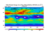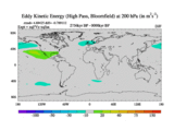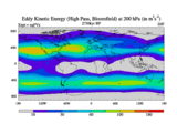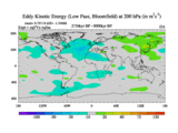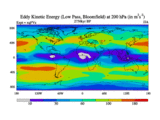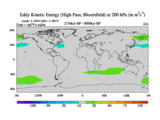 Low Pass Eddy Kinetic Energy at 200 hPa