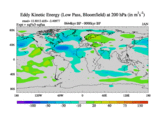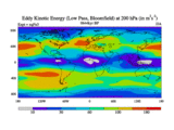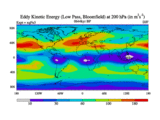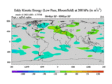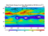 Low Pass Eddy Kinetic Energy at 200 hPa
