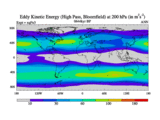 High Pass Eddy Kinetic Energy at 200 hPa
