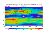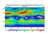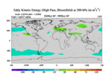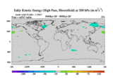 Low Pass Eddy Kinetic Energy at 200 hPa