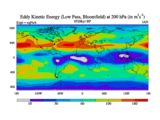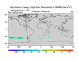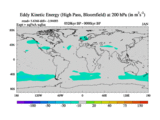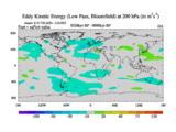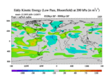 Low Pass Eddy Kinetic Energy at 200 hPa