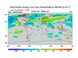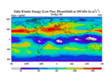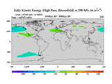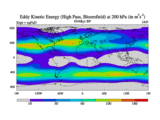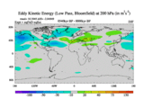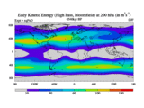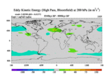 Low Pass Eddy Kinetic Energy at 200 hPa