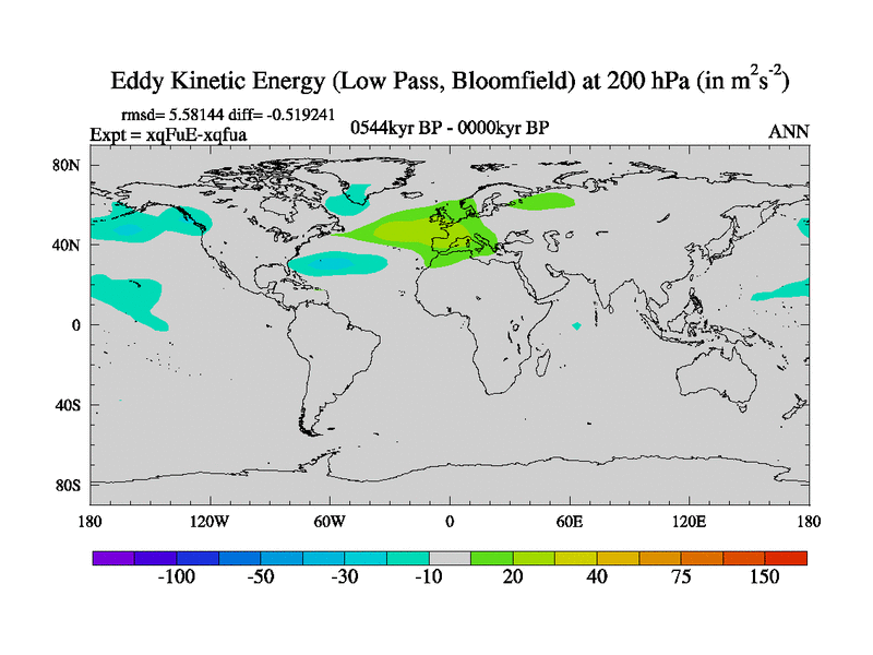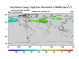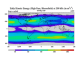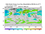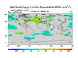 Low Pass Eddy Kinetic Energy at 200 hPa