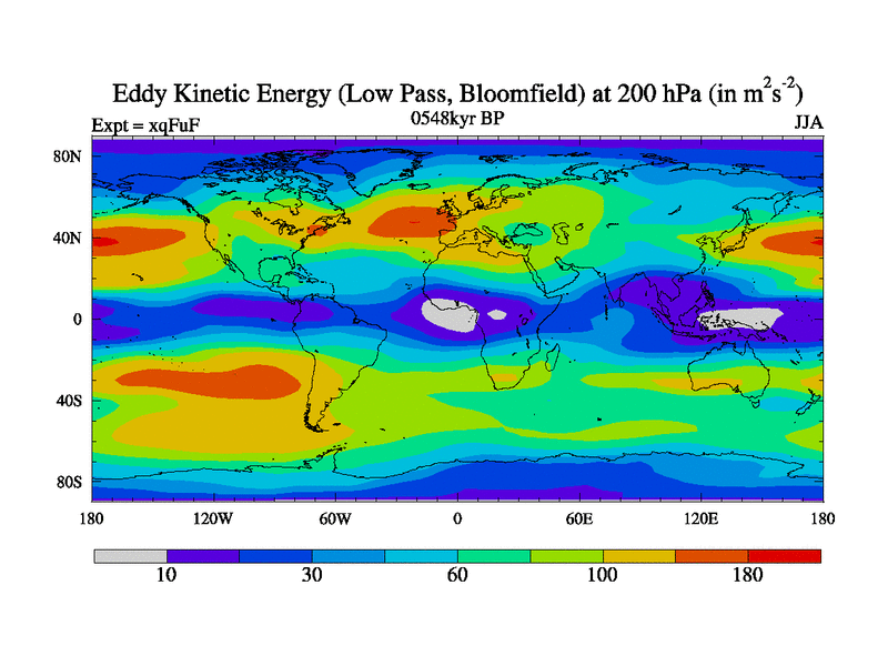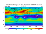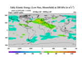 Low Pass Eddy Kinetic Energy at 200 hPa