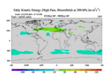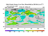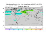 Low Pass Eddy Kinetic Energy at 200 hPa