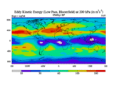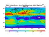 Low Pass Eddy Kinetic Energy at 200 hPa