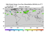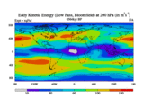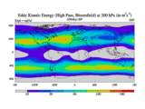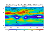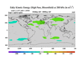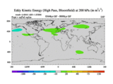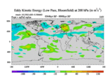 Low Pass Eddy Kinetic Energy at 200 hPa