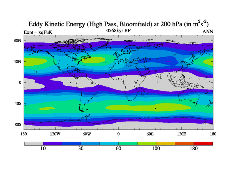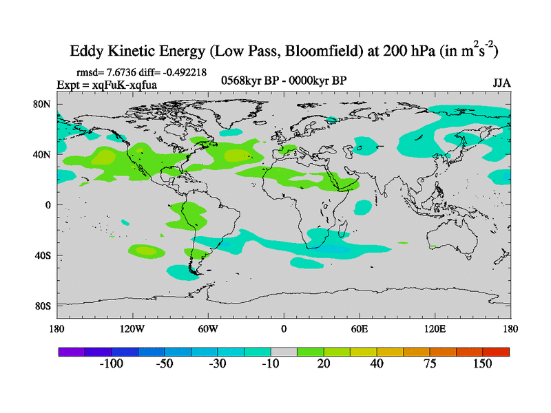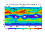 Low Pass Eddy Kinetic Energy at 200 hPa