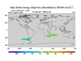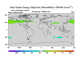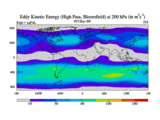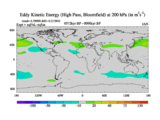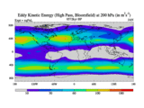 Low Pass Eddy Kinetic Energy at 200 hPa