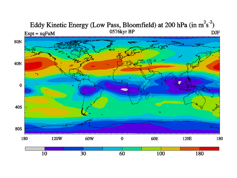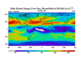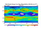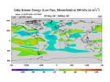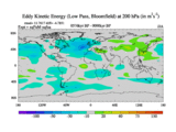 Low Pass Eddy Kinetic Energy at 200 hPa