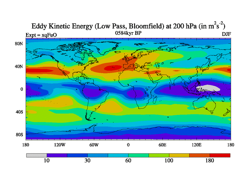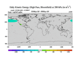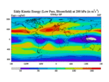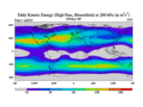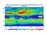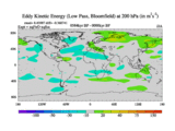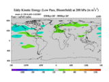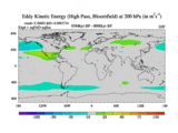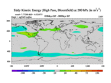 Low Pass Eddy Kinetic Energy at 200 hPa
