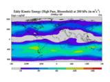 High Pass Eddy Kinetic Energy at 200 hPa