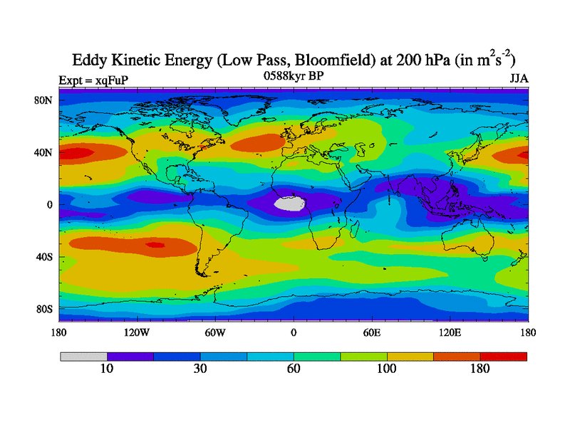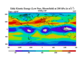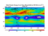 Low Pass Eddy Kinetic Energy at 200 hPa