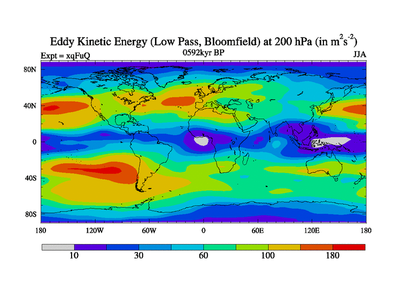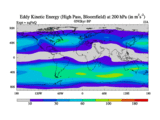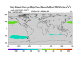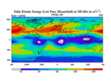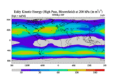 Low Pass Eddy Kinetic Energy at 200 hPa