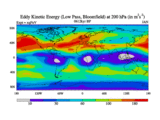 Low Pass Eddy Kinetic Energy at 200 hPa