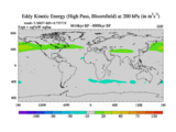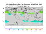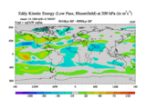 Low Pass Eddy Kinetic Energy at 200 hPa