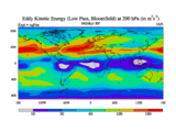 Low Pass Eddy Kinetic Energy at 200 hPa