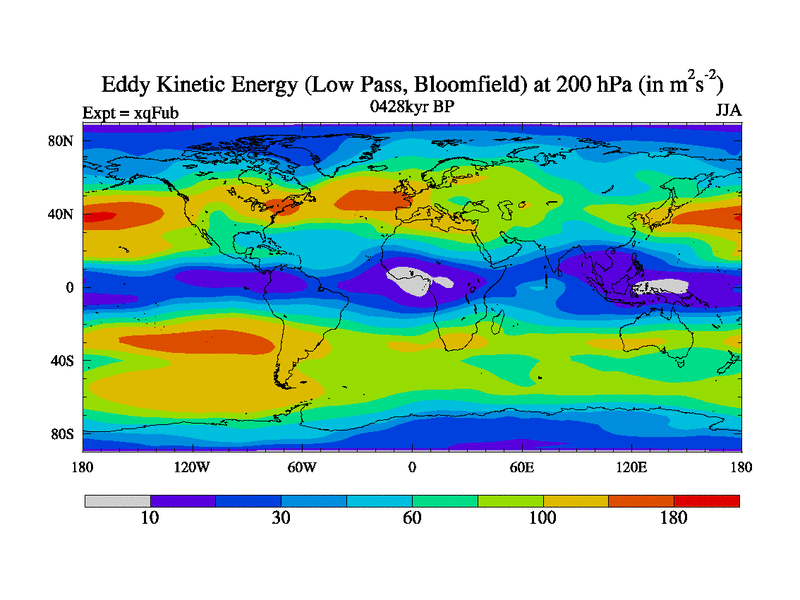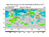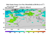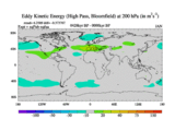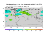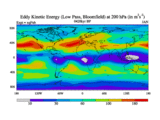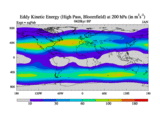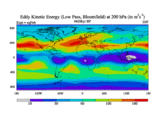 Low Pass Eddy Kinetic Energy at 200 hPa