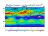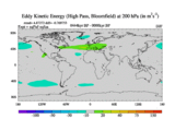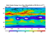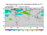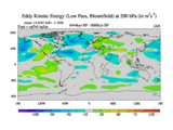 Low Pass Eddy Kinetic Energy at 200 hPa