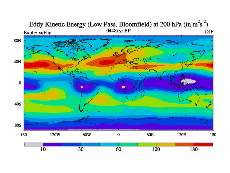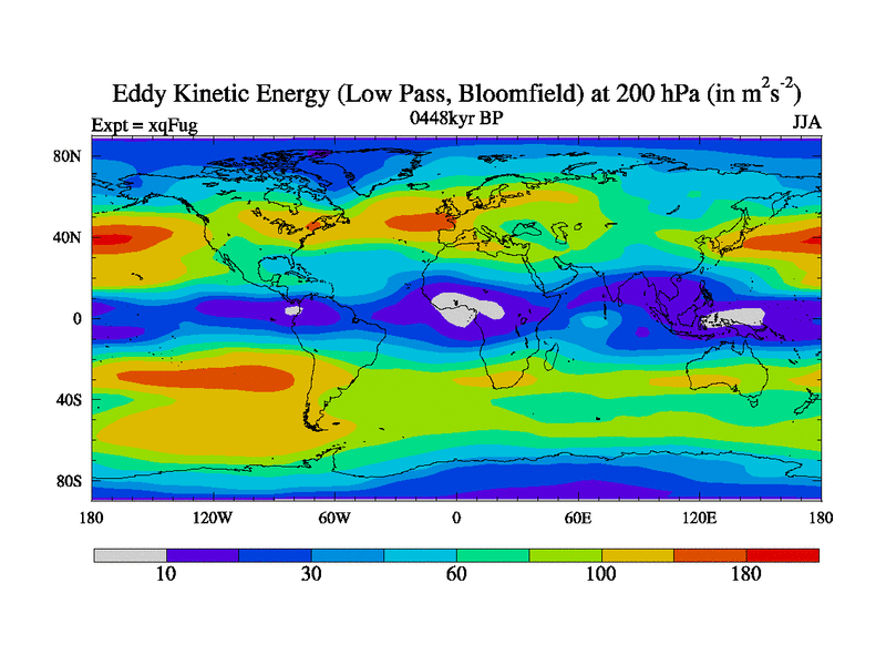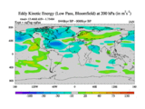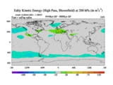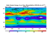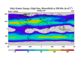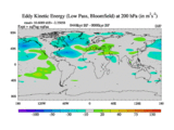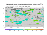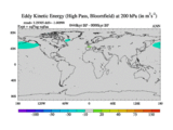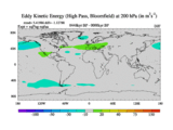 Low Pass Eddy Kinetic Energy at 200 hPa