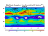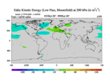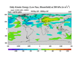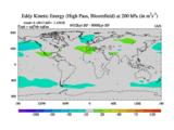 Low Pass Eddy Kinetic Energy at 200 hPa