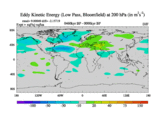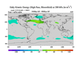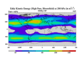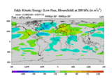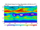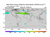 Low Pass Eddy Kinetic Energy at 200 hPa