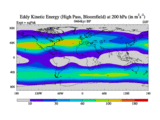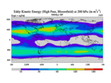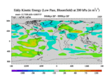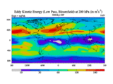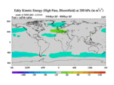 Low Pass Eddy Kinetic Energy at 200 hPa