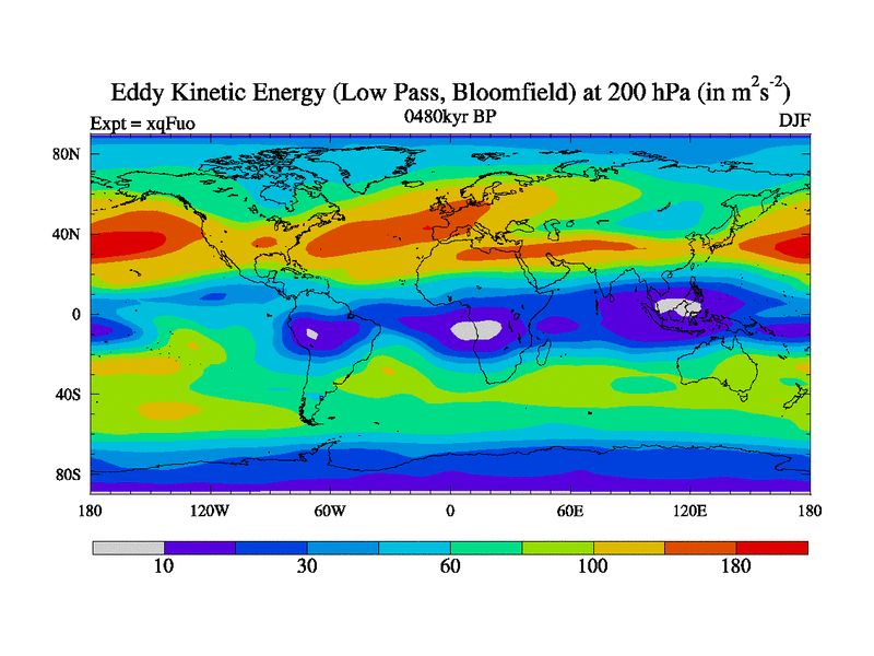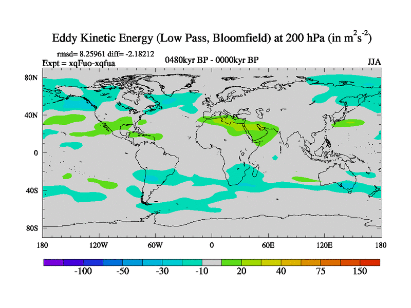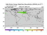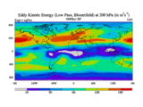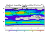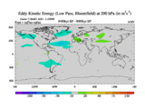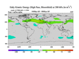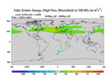 Low Pass Eddy Kinetic Energy at 200 hPa