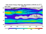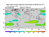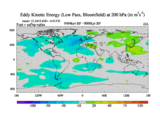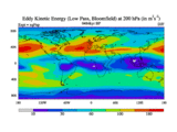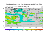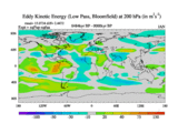 Low Pass Eddy Kinetic Energy at 200 hPa