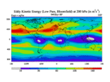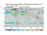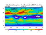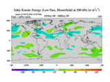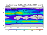 Low Pass Eddy Kinetic Energy at 200 hPa