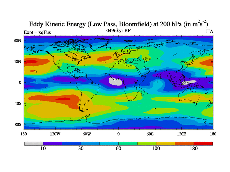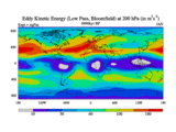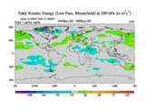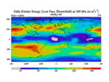 Low Pass Eddy Kinetic Energy at 200 hPa