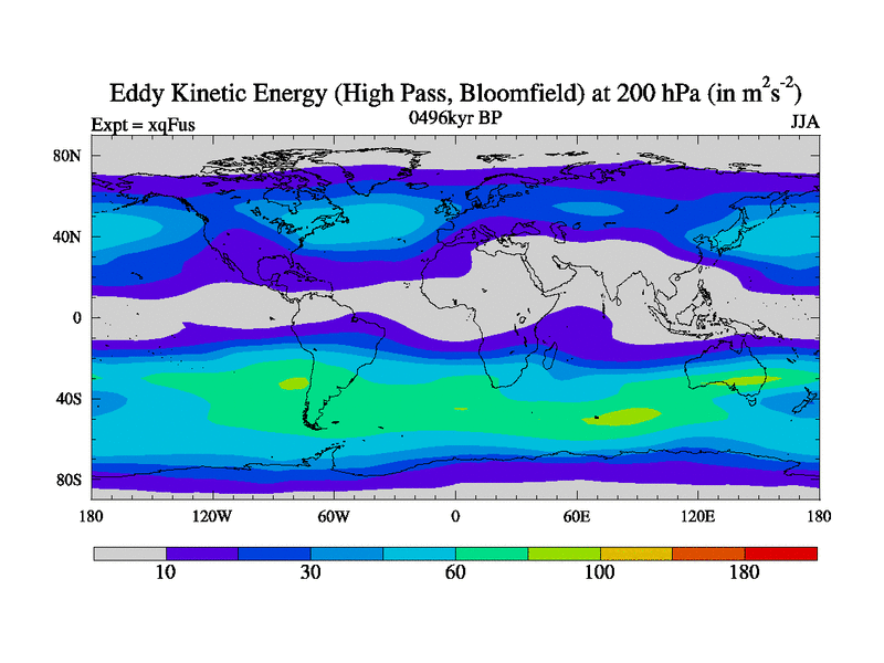 High Pass Eddy Kinetic Energy at 200 hPa
