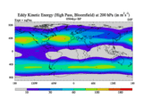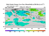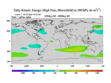 Low Pass Eddy Kinetic Energy at 200 hPa