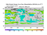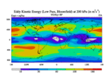 Low Pass Eddy Kinetic Energy at 200 hPa