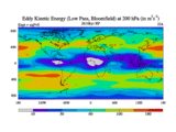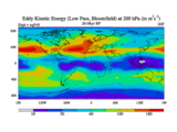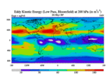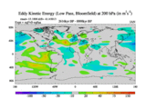 Low Pass Eddy Kinetic Energy at 200 hPa