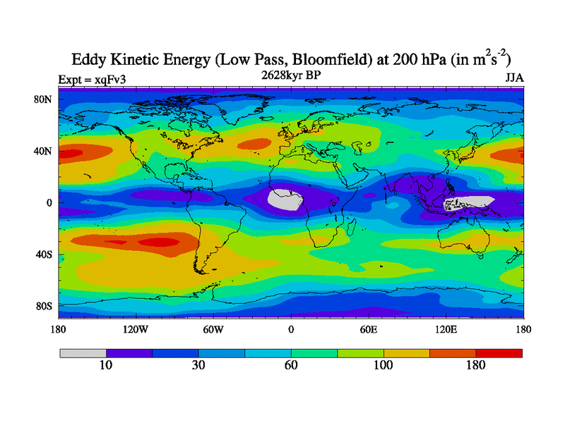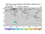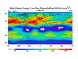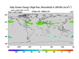 Low Pass Eddy Kinetic Energy at 200 hPa